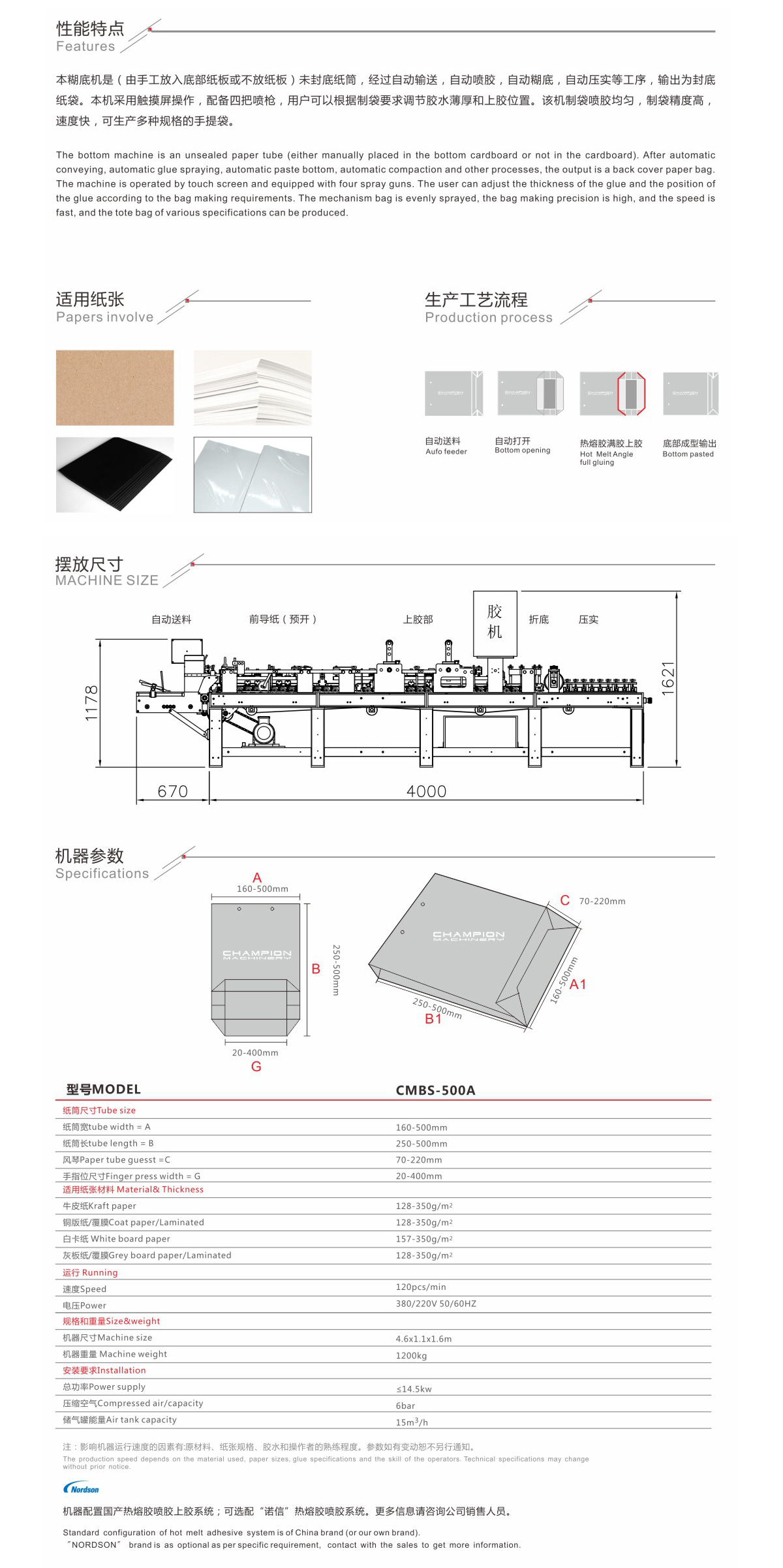• 紙袋機(jī)使用的紙張大小、厚度,范圍廣